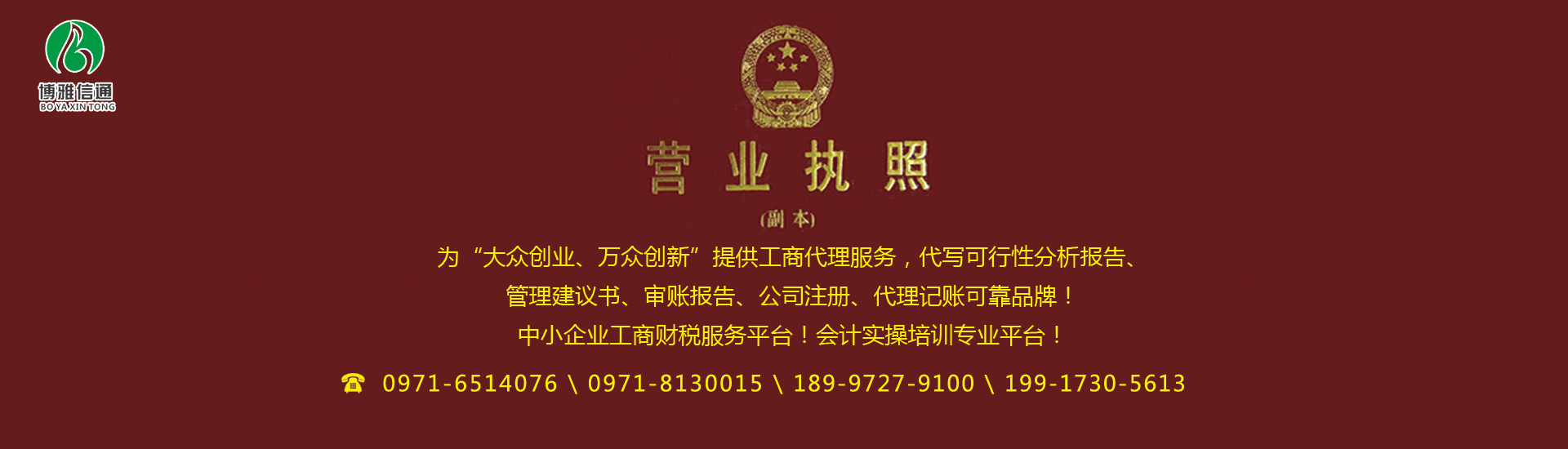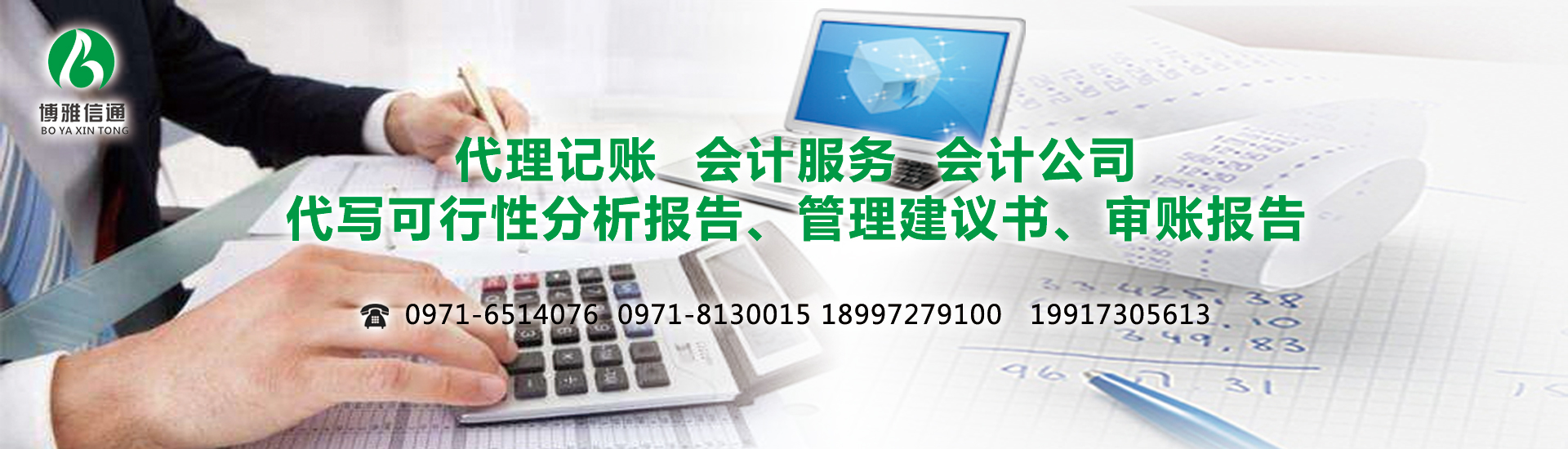 北京博雅信通會(huì)計(jì)服務(wù)有限公司西寧分公司為各中小企業(yè)提供各種專業(yè)工商財(cái)稅會(huì)計(jì)服務(wù)。包括公司設(shè)立籌劃、公司注冊(cè)、執(zhí)照變更、代辦注銷、代理記賬報(bào)稅、亂賬整理、會(huì)計(jì)實(shí)操培訓(xùn)、會(huì)計(jì)職稱培訓(xùn)(會(huì)計(jì)取證培訓(xùn))等一站式服務(wù)體系,誠(chéng)信、專業(yè)、高效、省心! 公司簡(jiǎn)介: 北京博雅信通會(huì)計(jì)服務(wù)有限公司西寧分公司 成立于2003年,積累了幾十個(gè)行業(yè)工商財(cái)稅會(huì)計(jì)服務(wù)經(jīng)驗(yàn),主要提供公司注冊(cè)、執(zhí)照變更、企業(yè)注銷、工商年報(bào)、代理記賬、納稅申報(bào)、會(huì)計(jì)培訓(xùn)、財(cái)稅顧問(wèn)等一系列服務(wù)。全程工商財(cái)稅老板們甩手我們代理,并且用足用好工商財(cái)稅優(yōu)惠政策,讓企業(yè)老板省心、省時(shí)、省事兒!節(jié)約會(huì)計(jì)核算和納稅成本,解放您的寶貴時(shí)間抓好企業(yè)經(jīng)營(yíng),做您的...